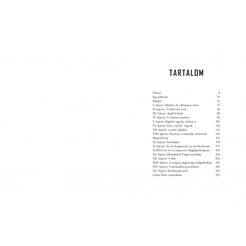 Ebben az önéletrajzi kötetben mesél arról, hogyan jutott el a nyitott dunaújvárosi jégpályáról a KHL legnagyobb arénáiba, s hogyan vált valóra egy U8-as mérkőzés előtt megfogalmazott, álomszerűnek tűnő cél: bedobni a korongot az A csoportos vb-n Kanadának.